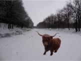 Warum manche Tiere dem eisigem Wind und Schnee trotzen und die Nacht lieber in der Natur verbringen, statt den Stall aufzusuchen, irritiert uns Menschen manchmal. Unsere schottischen Highlander fühlen sich bei dem wetter richtig wohl und nutzen auch in der Nacht nur selten ihre Hütte. Im wahrsten Sinne „auf die Spitze" treibt es aber ein Waschbär, der in luftiger Höhe auf ca. 15 Meter den Tag auf einem abgebrochenen Baum verschläft, obwohl im verschiedene Höhlen, Fässer oder Hütten ein geschütztes Lager bieten könnten.