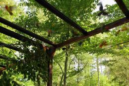 In der neuen riesigen Volière können die Agaporniden gar nicht genug vom fliegen bekommen.