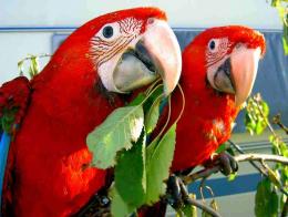 ...nicht von Blumen, sondern von unseren Papageien-Babies ist hier die Rede. ALBA und PAO heissen unsere Jüngsten. Sie werden noch mit speziell angereichertem Brei gefüttert und benehmen sich wie kleine Kinder. Wenn der grosse Appetit gestillt ist wird der der Kopf weggedreht und der verschmierte Schnabel fest zusammengepresst, und wenn die Ara-Babies nach dem Abendbrot müde werden grummeln sie noch vor sich hin, bevor sie nach einem ereignisreichen Tag, mit vielen neuen Eindrücken, glücklich einschlafen.