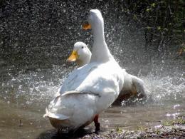 Dieser herrlich strahlende Sonnenschein lädt unsere beiden Peking-Enten zum Frühjahrsputz ein.