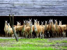 Unsere grosse Herde wilder Neuwelt-Kamele freut sich über das grosszügige Gehege in unterschiedlichen Ebenen.