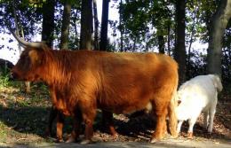Oma Guta unsere liebe Highlander Kuh hatte uns in den frühen Morgenstunden überrascht. Sie schenkte einem hellbraunen Kalb das Leben. Die Geburt verlief wieder problemlos. Leider hatte Claire eine andere liebe, schottische Hochlandkuh nicht so viel Glück. Während der schwierigen Geburt erlitt sie einen Herzstillstand, so dass weder Mama noch Kalb gerettet werden konnten. Es stimmt uns traurig, aber Claire hatte bis zuletzt ein schönes, freies Leben. Um die letzte Tochter von Claire kümmert sich jetzt rührend Finjia, die ja auch ein direkter Nachkomme, nämlich Claire's Enkelkind ist.