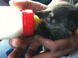 Josephine und Max. Die 2 Nasenbärchen haben jetzt die Augen offen und erkunden interessiert die Umwelt, aber die warme Milchflasche schmeckt halt am Besten.