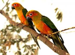 Unsere neuen jungen Sonnensittiche Panja und Pico erleuchten die regnerischen Tage.