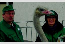 Viel Spaß brachten die Dreharbeiten mit Schauspielerin Katja Flint und Tierlehrer Bodo Hölscher bei der Auslieferung von (Vogel-) Sträußen und natürlich mit Filmtier Strauss Franz-Joseph