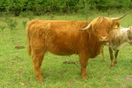 Die häufigste Farbe ist rot-braun, manchmal auch gesträhnt oder weiss. Die schwarze Art stammt von den etwas kleineren Kyloe ab.