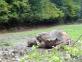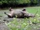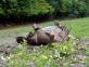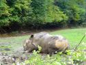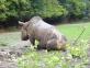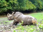 Auch ein Filmtier - Nashorn will zwischendurch relaxen und sich ein Schlammbad gönnen. Wie viel Spass dies unserem Nashornbullen Rafiki macht, sieht man auf diesen Bildern. Die dicke Schlammschicht schützt die Haut und hält ungeliebte Mücken ab. Umso mehr geniesst unser lieber Bulle, wenn er später ausgiebig gebürstet und von der getrockenen Schlammkruste befreit wird. Dies schafft Vertrauen. Weil unser Filmtier Rafiki sich bürsten lassen so liebt, wird es auch das Streichelnashorn genannt.